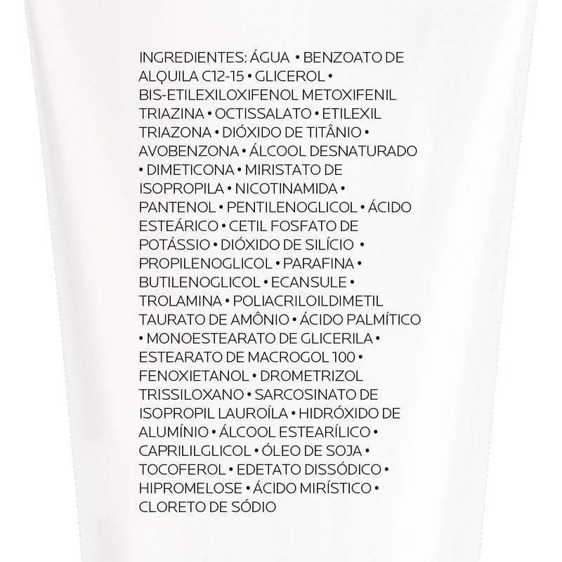 Aqua / Water, C12-15 Alkyl Benzoate, Glycerin, Bis-Ethylhexyloxyphenol Methoxyphenyl Triazine, Ethylhexyl Salicylate, Ethylhexyl Triazone, Titanium Dioxide, Butyl Methoxydibenzoylmethane, Alcohol, Dimethicone, Isopropyl Myristate, Niacinamide, Panthenol, Pentylene Glycol, Stearic Acid, Potassium Cetyl Phosphate, Silica, Propylene Glycol, Synthetic Wax, Butylene Glycol, Aluminum Hydroxide, Ammonium Polyacryloyldimethyl Taurate, Caprylyl Glycol, Disodium Edta, Drometrizole Trisiloxane, Glyceryl Stearate, Glycine Soja Oil / Soybean Oil, Hydroxypropyl Methylcellulose, Isopropyl Lauroyl Sarcosinate, Myristic Acid, Palmitic Acid, Peg-100 Stearate, Phenoxyethanol, Sodium Chloride, Stearyl Alcohol, Terephthalylidene Dicamphor Sulfonic Acid, Tocopherol, Triethanolamine.