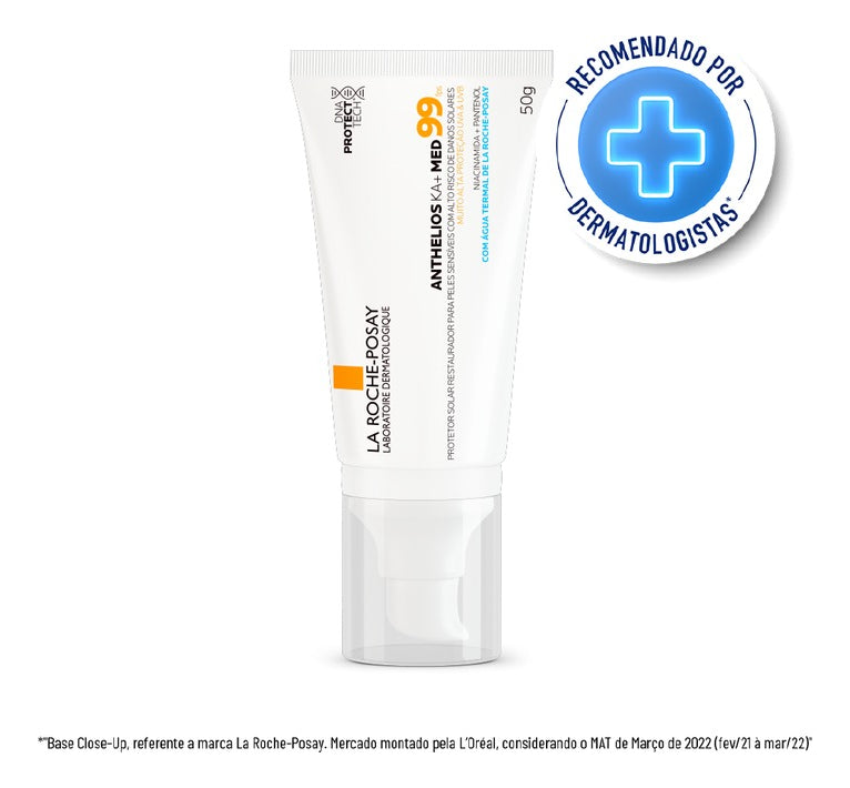 Protetor solar para peles sensíveis. La Roche-Posay Anthelios KA+MED FPS 99 auxilia na prevenção dos danos actínicos celulares no DNA.