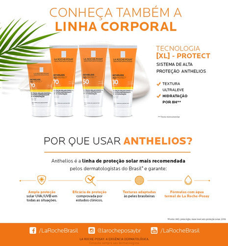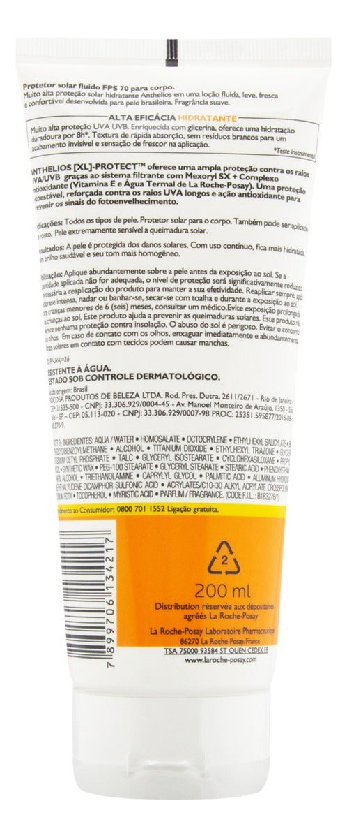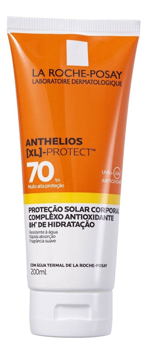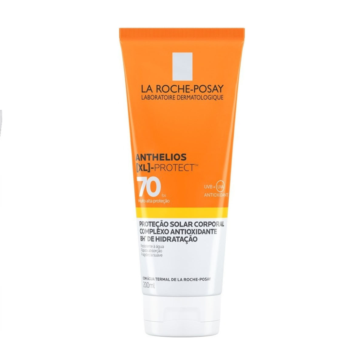 Protetor solar corporal para todos os tipos de pele. La Roche-Posay Anthelios XL Protect FPS70 oferece muito alta proteção UVA/UVB que hidrata por até 8h.