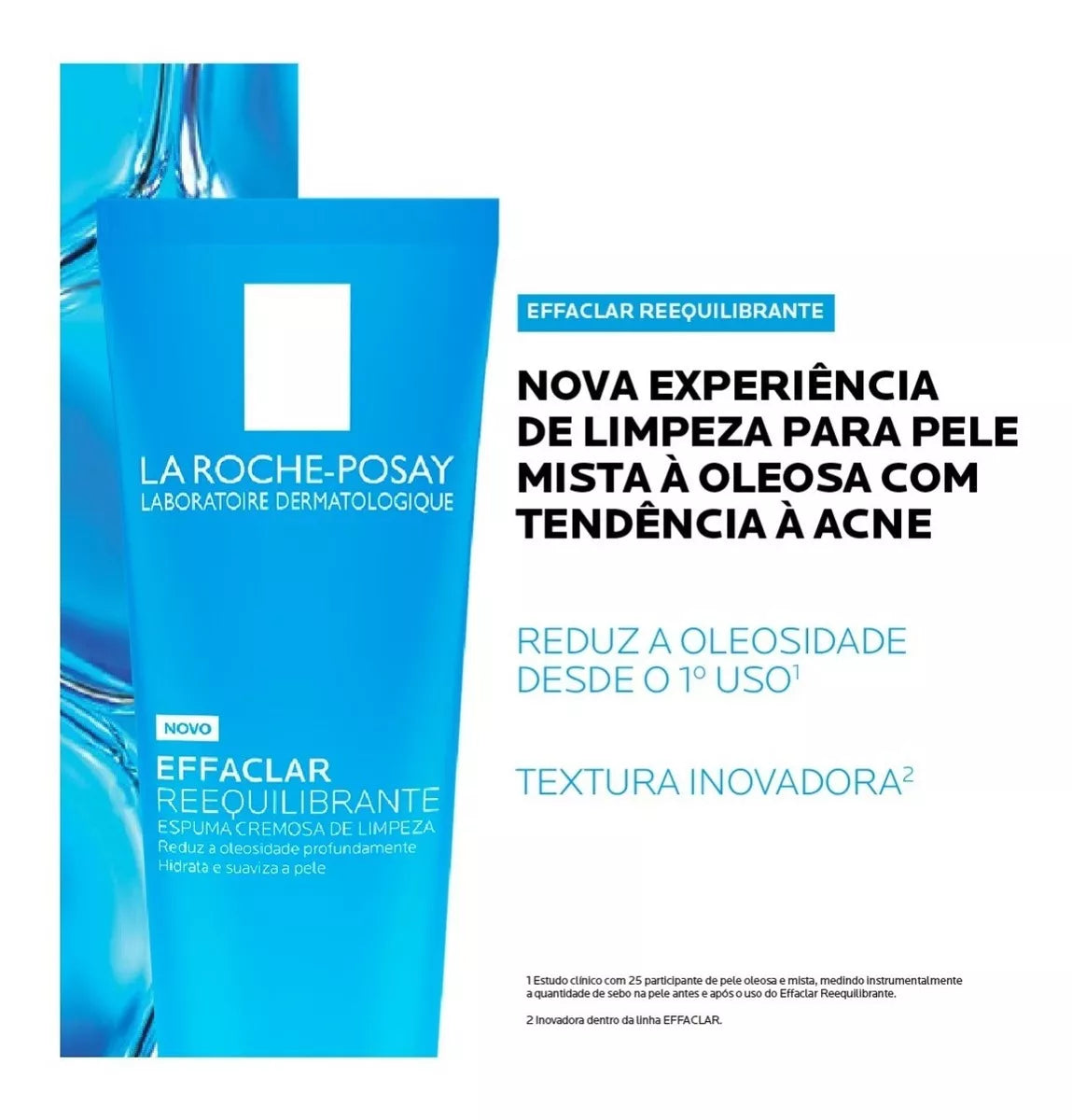 Espuma cremosa de limpeza facial para pele mista, oleosa ou acneica. La Roche-Posay Effaclar Reequilibrante reduz a oleosidade profundamente.