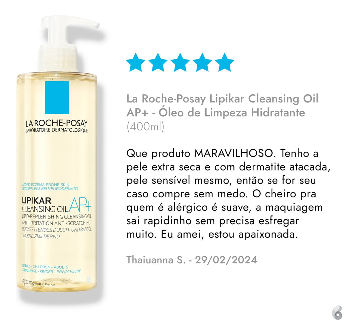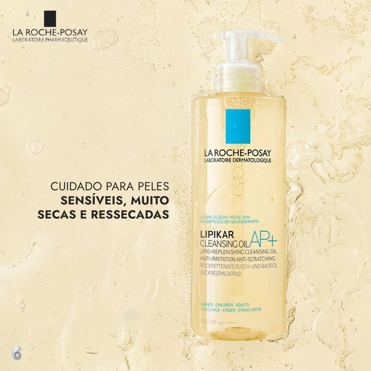 Óleo de limpeza hidratante para peles sensíveis, muito secas e ressecadas. La Roche-Posay Lipikar Cleansing Oil AP+ nutre a pele e protege do ressecamento.